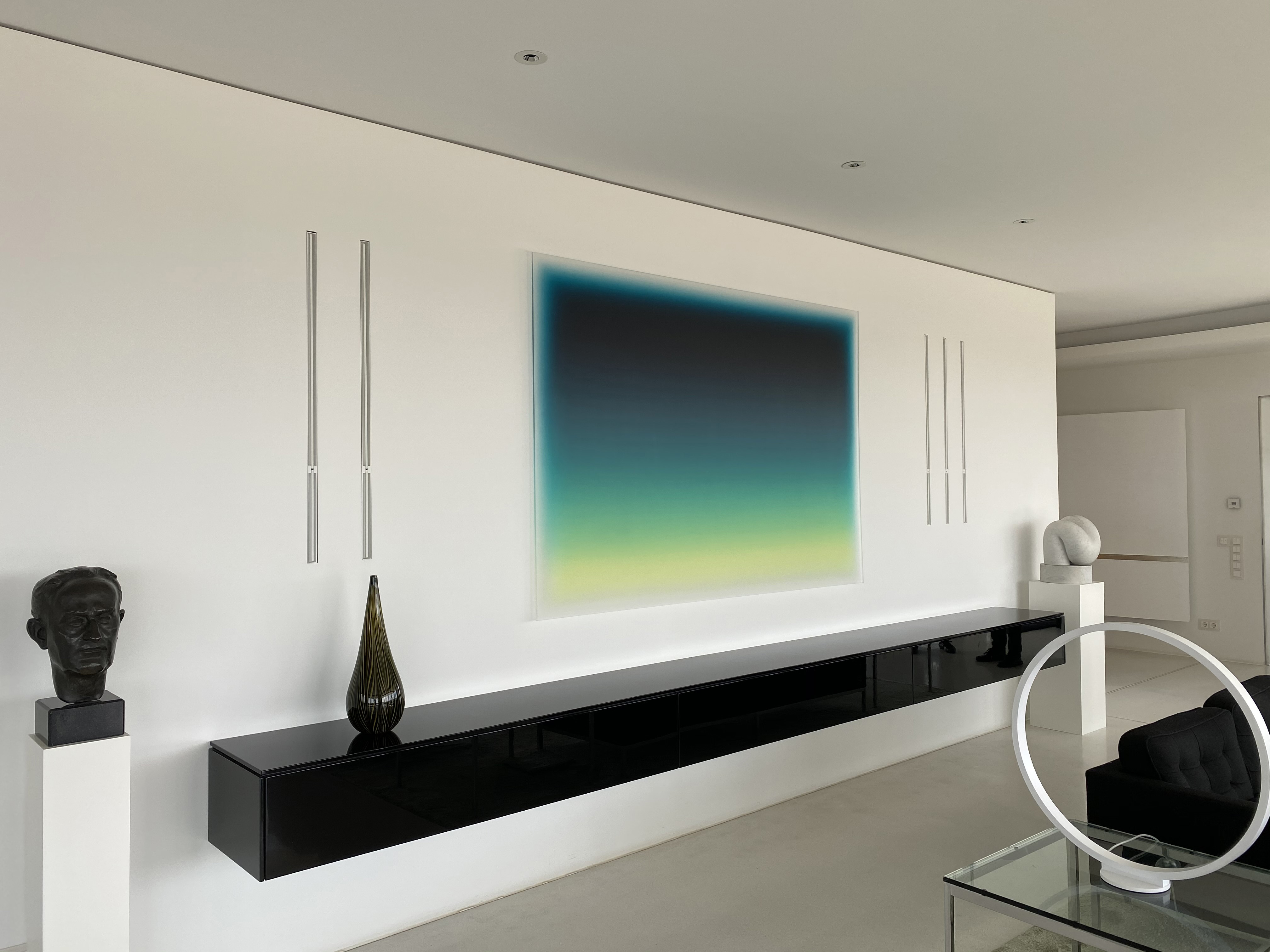 Titel: Albedo 2009 Jeff Beck Jahr: 2009 Kategorien: Albedo Technik: Acryl auf Acrylglas Größe: 150 x 220 cm Sammlung: Privatsammlung Stuttgart Untertitel: Partitur, Mischtechnik auf Papier, 70 x 50 cm