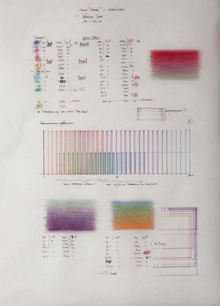 Titel: Albedo 2008 Miles Davis Jahr: 2008 Kategorien: Albedo Technik: Acryl auf Acrylglas Größe: 150 x 220 cm Untertitel: Partitur Albedo 2008 Miles Davis 70 x 50 cm