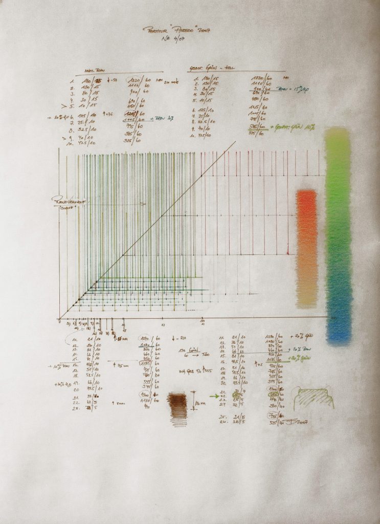 Titel: Albedo 2007 No. 4 Jahr: 2007 Kategorien: Albedo Technik: Acryl auf Acrylglas Größe: 150 x 168 cm Untertitel: Partitur Albedo 2007 No. 4 70 x 50 cm