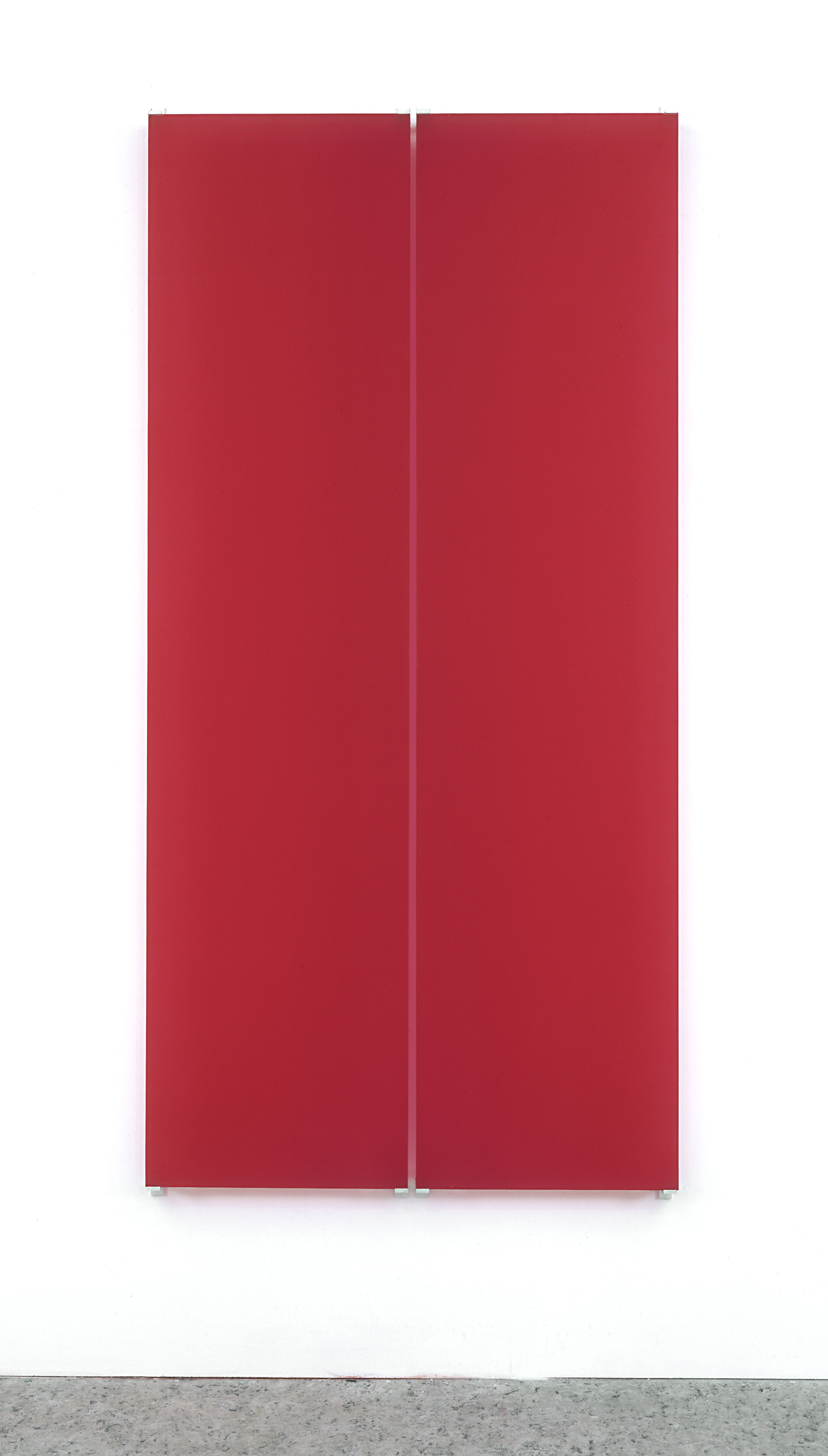 Titel: Behind Bars 1993 No. 6 Jahr: 1993 Kategorien: Glasarbeiten Technik: Öl, Acryl auf Glas Größe: 205 x 100 cm 2-teilig