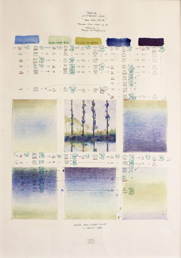 Titel: Lichtdeuter 2021 Bon Soir Claude Jahr: 2021 Kategorien: Lichtdeuter Technik: Acryl auf Acrylglas Größe: 150 x 130 cm Sammlung: Sammlung Gröner Berlin Untertitel: Partitur, Mischtechnik auf Papier, 70 x 50 cm