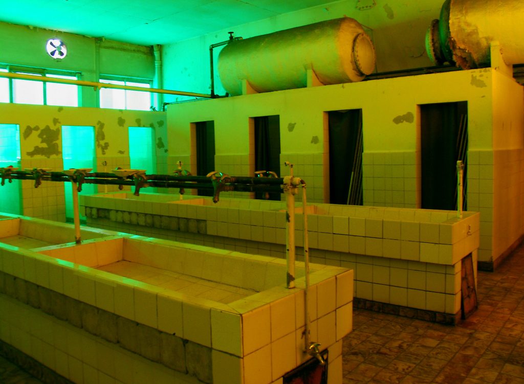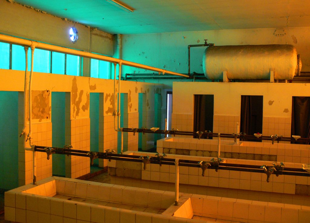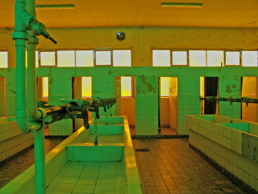 Titel: Die Dusche Attendorn Jahr: 2006 Kategorien: Kunst am Bau Technik: Acryl auf Fensterglas Fensterbemalung einer Duschanlage in einer alten Schwerindustrie in Attendorn/Sauerland.