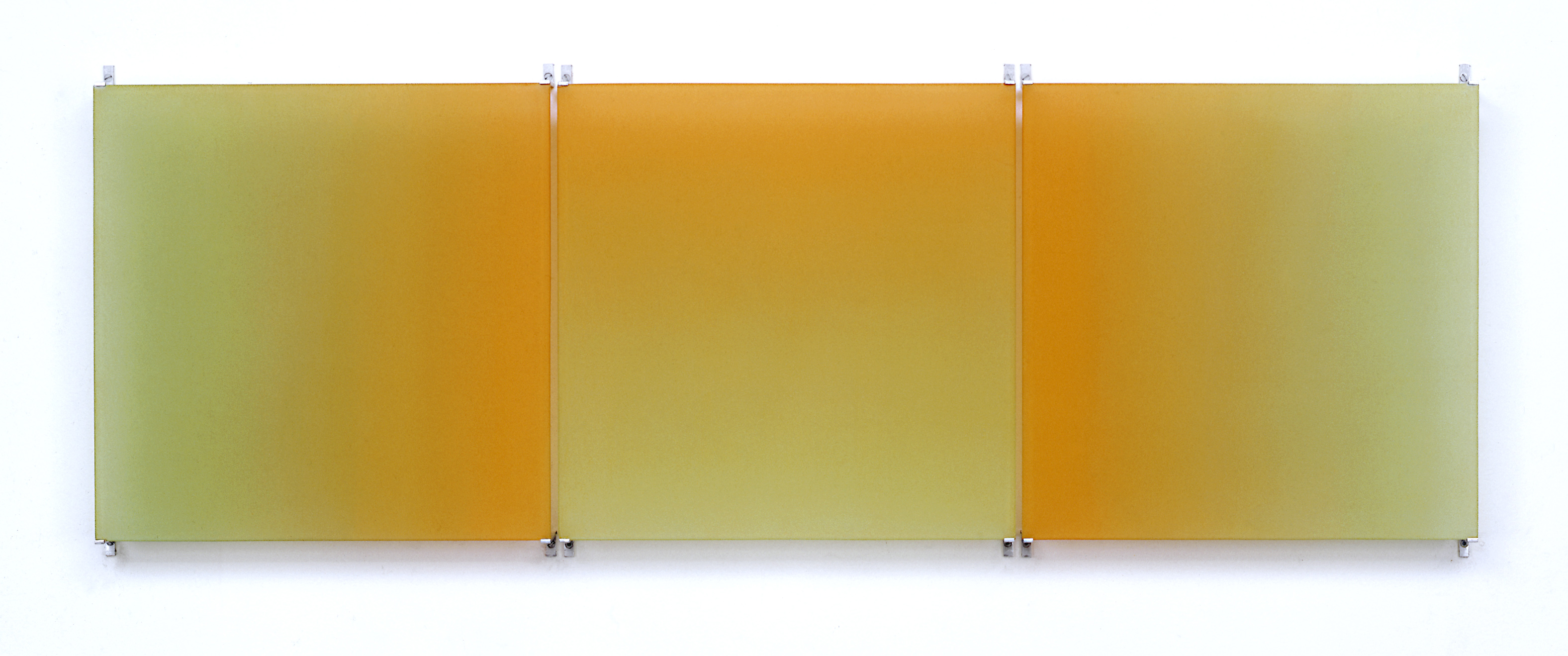 Titel: Echo 1994 No. 15 Jahr: 1994 Kategorien: Glasarbeiten Technik: Acryl auf Glas Größe: 33 x 99 cm Sammlung: Privatsammlung 3-teilig