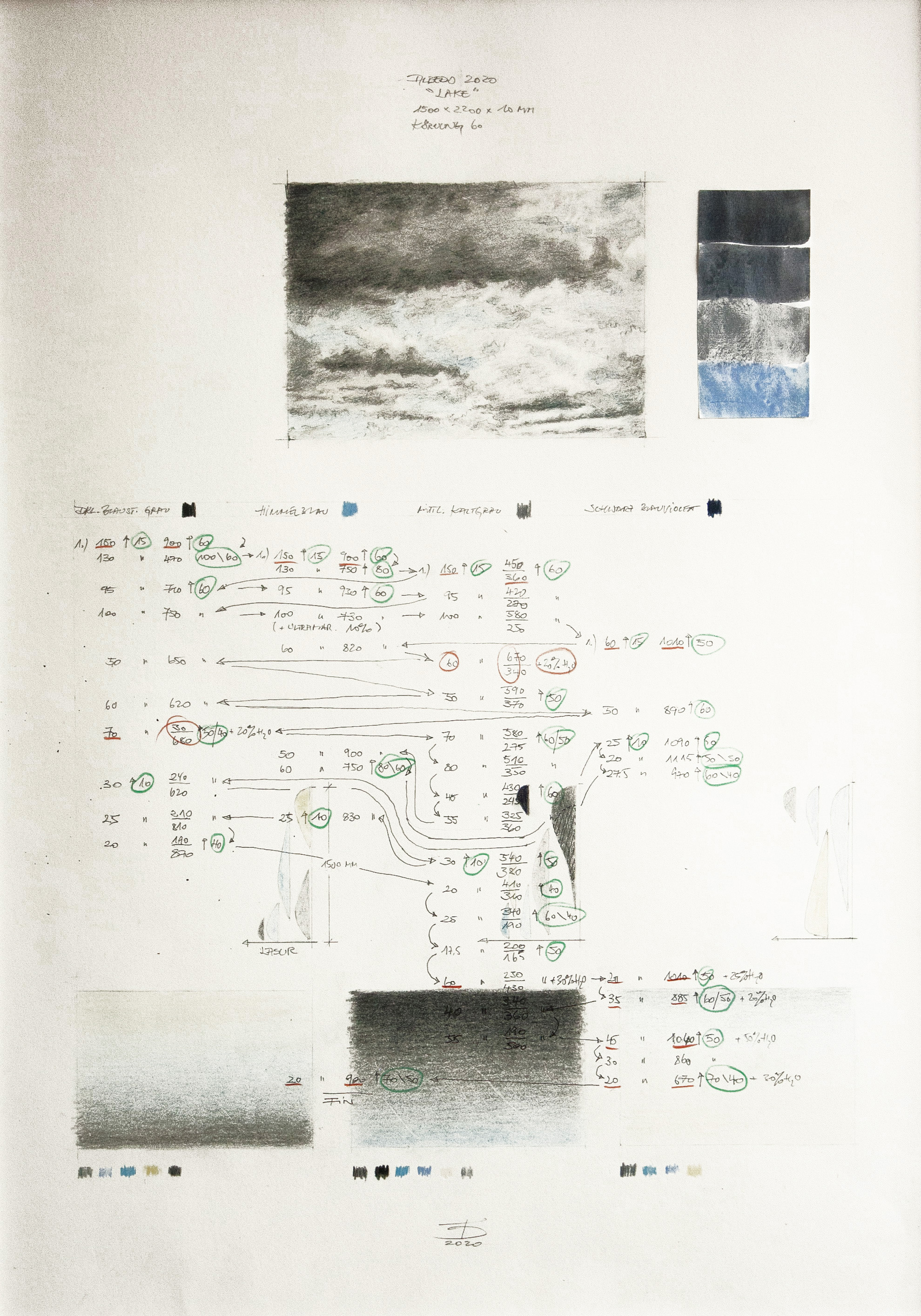 Titel: Albedo 2020 Lake Jahr: 2020 Kategorien: Albedo Technik: Acryl auf Acrylglas Größe: 150 x 220 cm Untertitel: Partitur Albedo 2020 Lake 70 x 50 cm