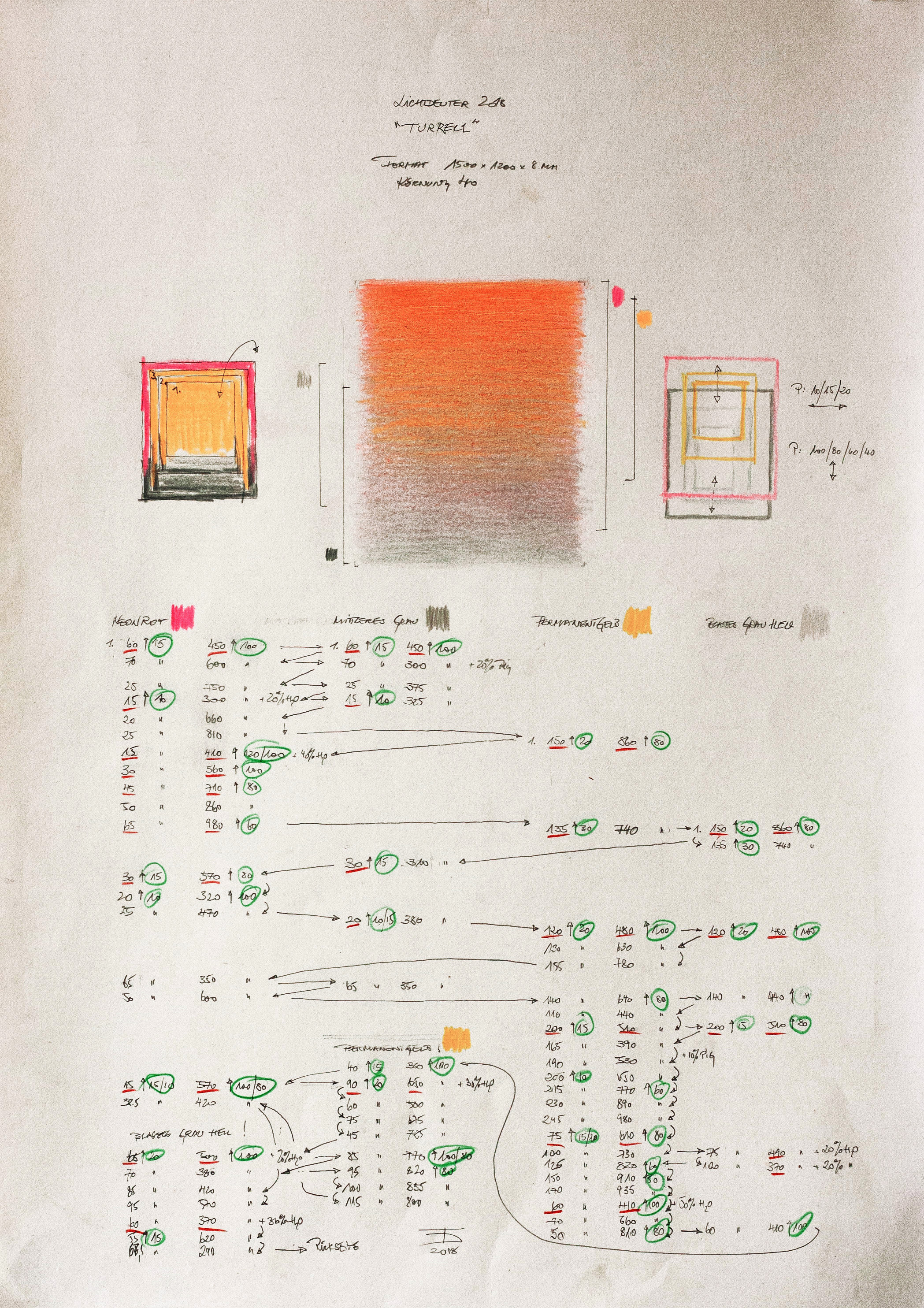 Titel: Lichtdeuter 2018 Turell Jahr: 2018 Kategorien: Lichtdeuter Technik: Acryl auf Acrylglas Größe: 150 x 120 cm Sammlung: Privatsammlung Untertitel: Partitur, Mischtechnik auf Papier, 70 x 50 cm